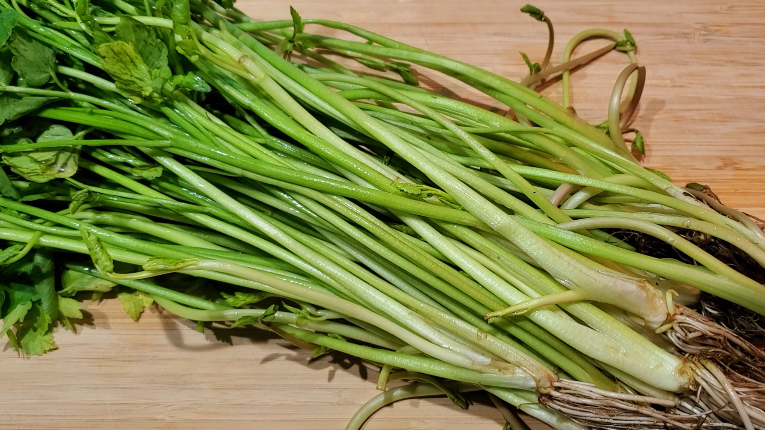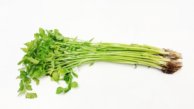 12月から4月にかけてお店でみかけるようになるせり。七草がゆの1つとしても知られています。数少ない日本原産の野菜のひとつでもあります。香りが高く、料理にアクセントを与えてくれます。