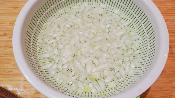3.2のドレッシングに玉ねぎを加え、軽く混ぜます。