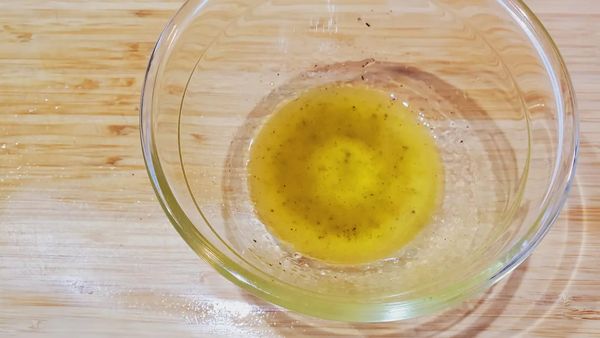 2.ボウルに酢、オリーブオイルを混ぜ合わせ、塩、黒胡椒を加え味をととのえます。